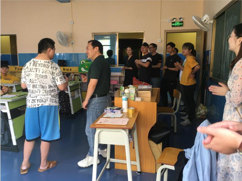 2020年11月26號我們在劉總的帶領下,懷著好奇與渴望的心情來到了兒童福利院,當我們走進福利院大門時,福利院的教職工早早地等在門口,熱情地接待了我們。在院長的指引下我們把提前準備的捐贈玩具,零食已經一些生活用品送進了他們的辦公室,我們一放下物資就迫不及待的走到了兒童活動區。