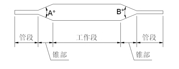 稱為工作段;兩端管段的作用是和導管其余部分進行連接;錐