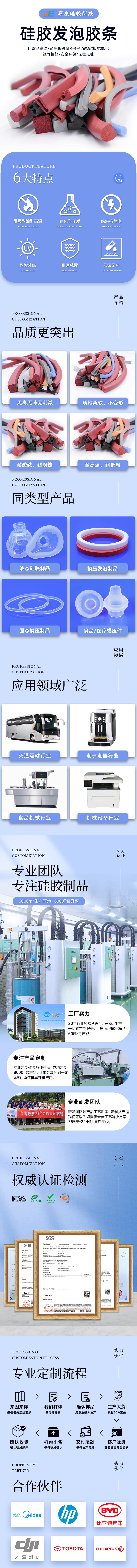 環保耐高溫硅膠發泡條可用于需耐高低溫設備、密封件,及電線電纜絕緣層、食品及醫療、化工、工業、輪船等領域。