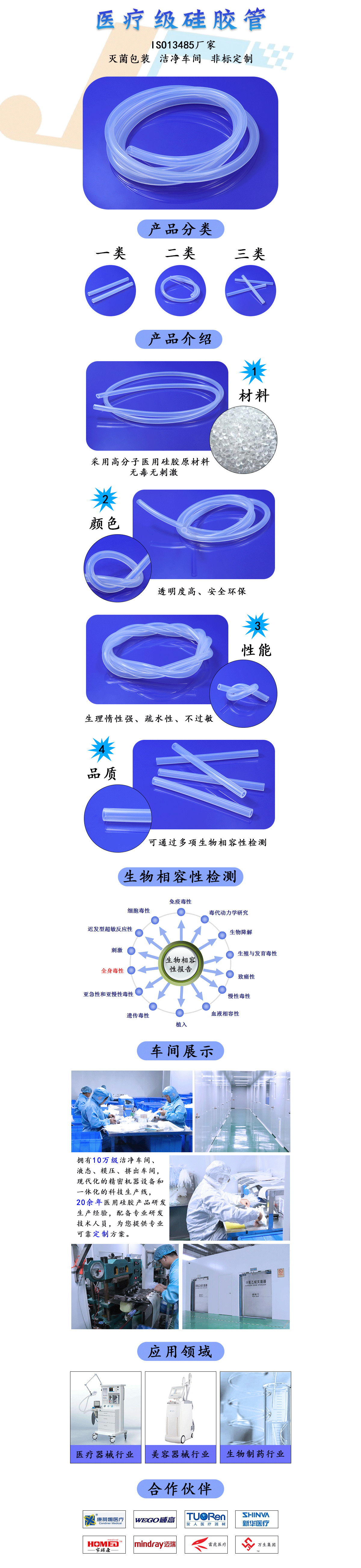 醫療級鉑金硫化硅膠管廣泛用于醫療、生物制藥、食品加工、化學實驗、電子、電器、嬰幼兒用管制品等領域。