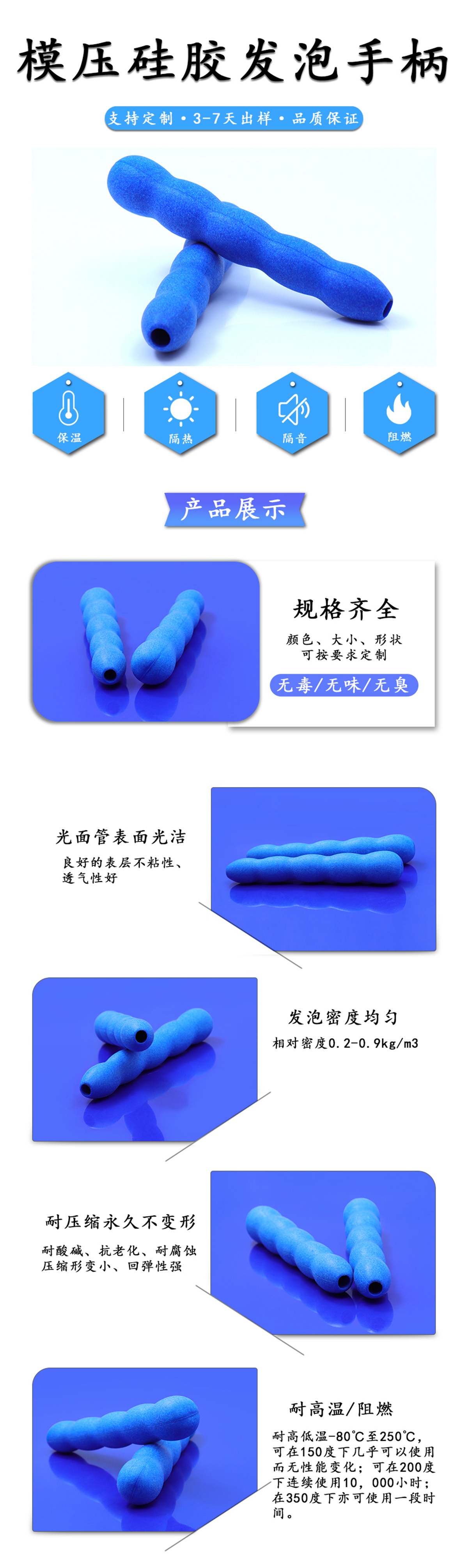 模壓硅膠發(fā)泡手柄性能: